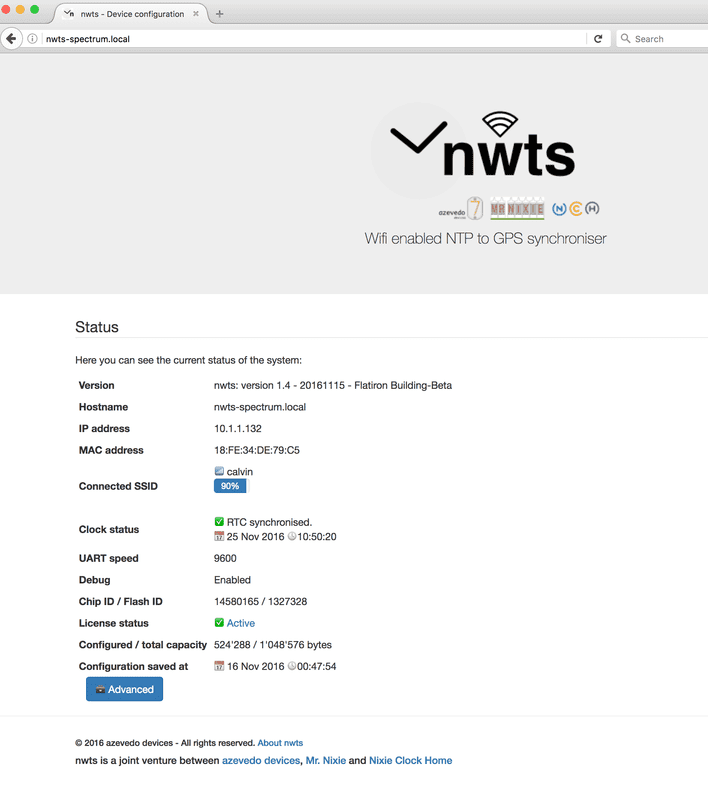 Using the ESP8266 — an Internet-of-Things (IoT) Micro Controller Unit (MCU) — we've developed together with Mr Nixie, a device that emulates the GPS device that is usually used to synchronize Nixie clocks and sets instead the clock's time using Network Time Protocol (NTP).